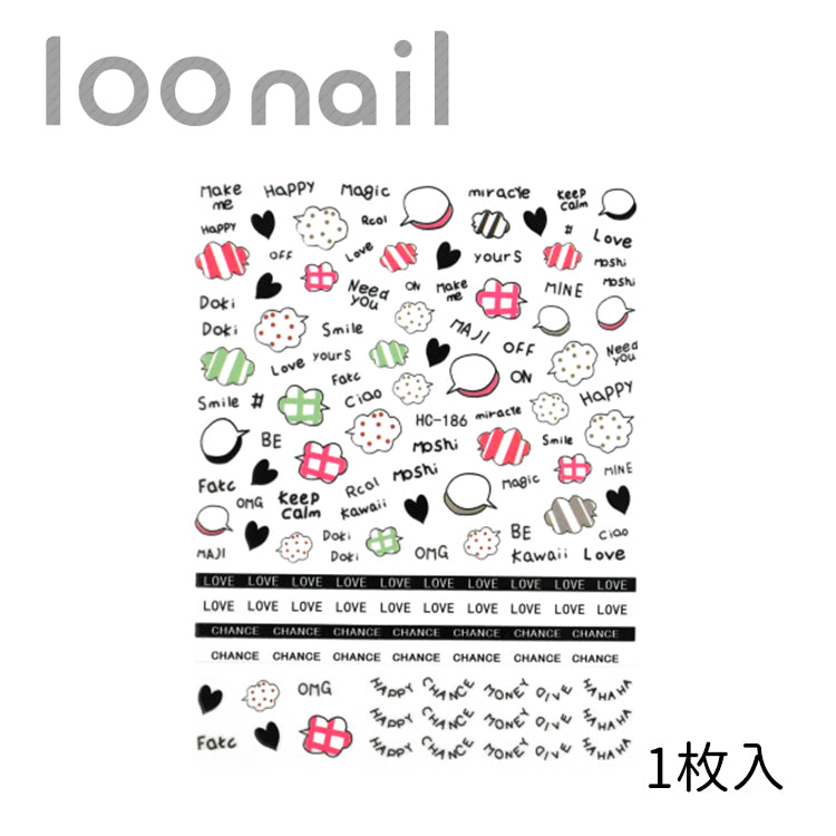| ファンシーな文字(Fancy) ファンシーでポップなネイルシールです。 吹き出しや文字を合わせて使えます。 透けないので、どんなベースにも使えます。 かわいらしい文字でネイルアートをお楽しみください。 --------------------- 薄さ:とても薄く貼っている感じがありません。 透け感:なし モチーフのサイズ:3mm〜7mm | |
