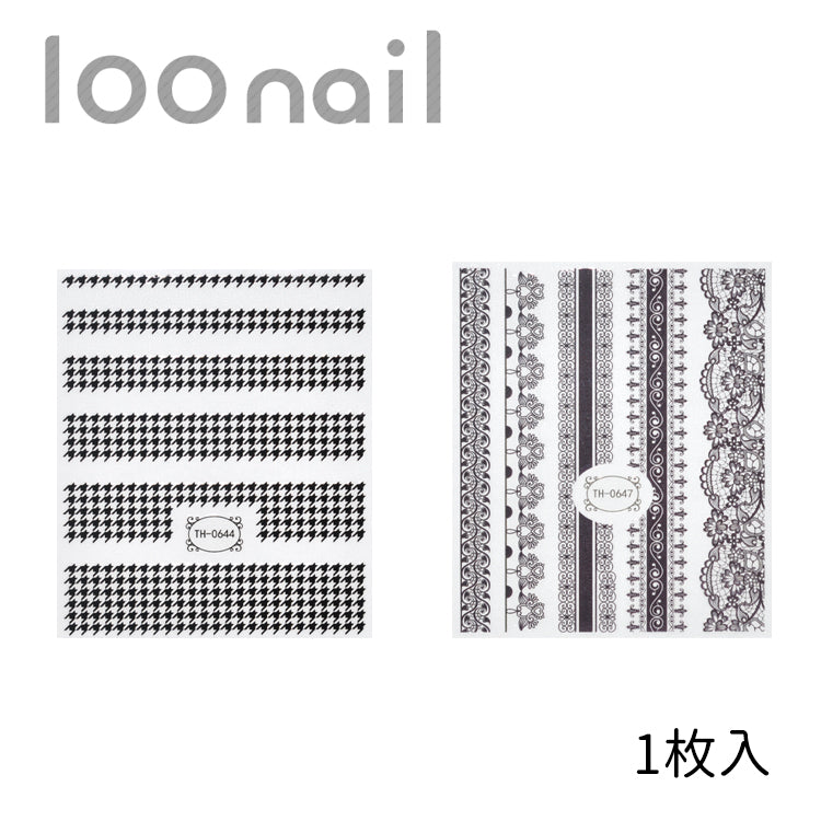 | monotone pattern モノクロもよう とても細かいデザインが施された モノトーンの落ち着いた印象の ネイルシールです。 -------------------------------------- 薄さ:薄くて貼っている感じがしません 透け感:なし 【TH-0644】 モチーフの幅:4mm~20mm 【TH-0647】 モチーフの幅:8mm~17mm ※ネイルに馴染みやすくとても薄いシールになります。 お取り扱いの際は破れやすいので引っ張らず、ゆっくりと優しく台紙からお剥がし下さい。 特性上、貼り直しの際に模様がネイルに接着している事があります。 予めご了承下さい。 | |